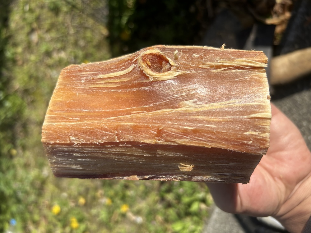 抜根された木。 この根っこの土や石を取り除きます。 重機で振ったり、上から叩いたりして取れるだけ取ります。 ですが、根元の方は取りきれないのでそこから手で取っていきます。 バールとか棒とかを使って。 高圧洗浄機があれば綺麗に取れそうですが、現場に水がありませんので。手で。 いい方法がありましたらどうぞ教えて下さい。よろしくお願いします。 よーし 薪に晴れ舞台を!
