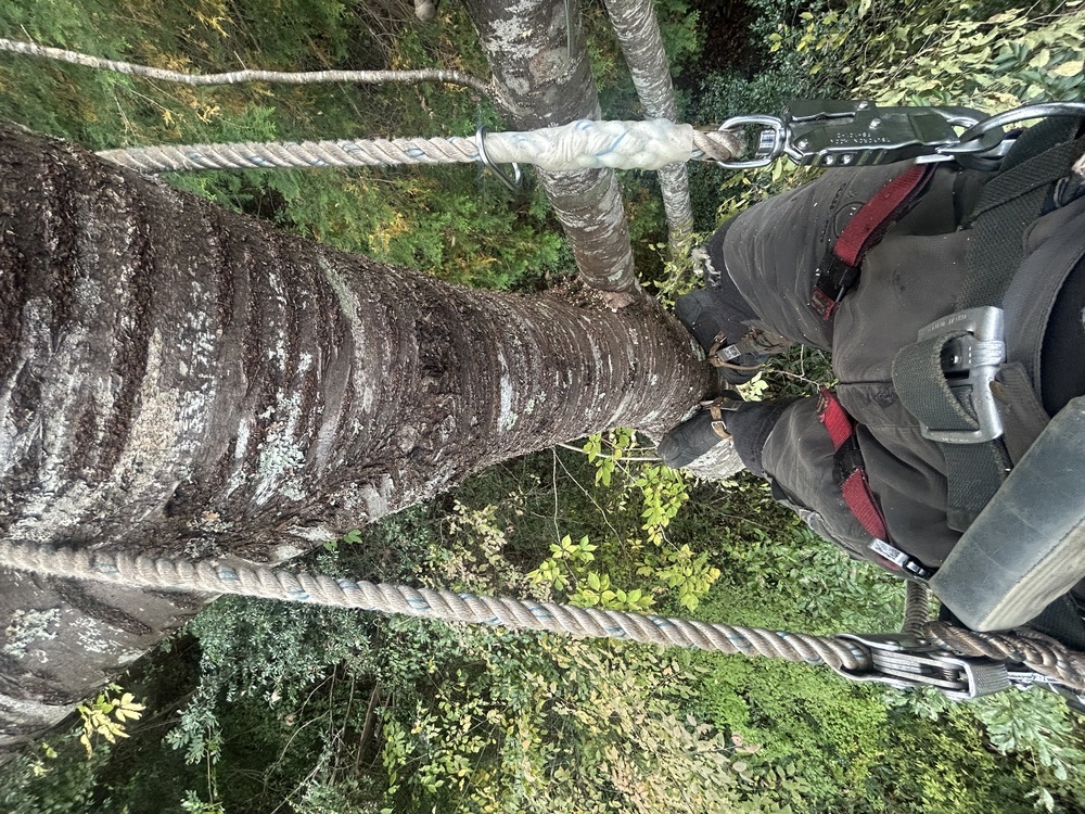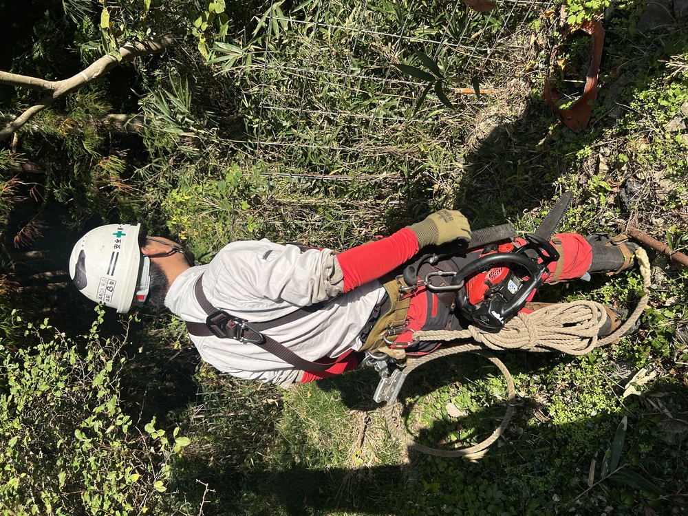 木から墜落事故での安全対策も終わり、木登り開始! 谷底から大きく育った桜の枝打ち。 高さは谷底から20mくらい。 落ちないように、怪我しないように安全に気をつけてやっております。 明日は我が身。 ご安全に! 薪に晴れ舞台を!