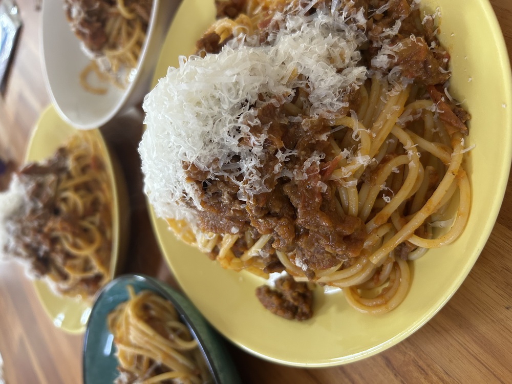 ボロネーゼ 牛ミンチ ソフリット ローリエ にんにく 赤ワイン オリーブオイル パルミジャーノ トマト缶 ボロネーゼのソースはケチらずルパン3世くらいの大盛りで