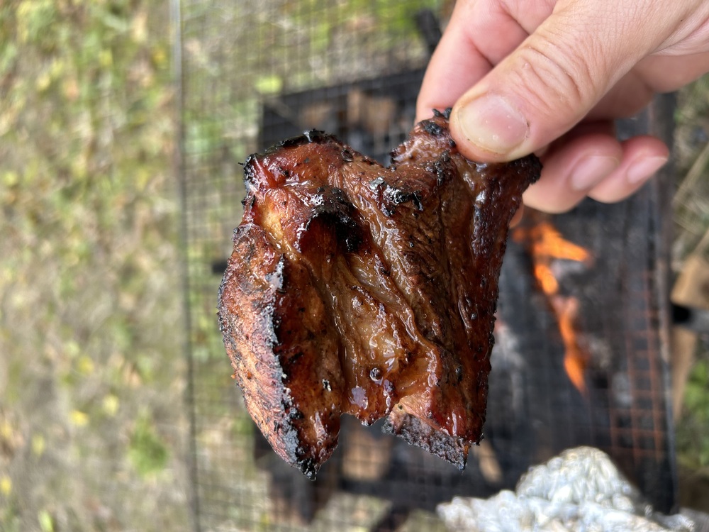 大変美味しく焼き上がりました! 薪火で肉焼くの楽しいです。 明日は豆餅焼いて食べます。 風が強くて仕方ないので、ユニフレームの薪グリルラージが欲しいです。 どなたかおすすめの焚き火台教えて下さい! 薪に晴れ舞台を!
