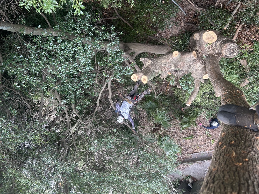もうすぐ9月になるのにこの暑さ、夏の樹上での作業はキツい。 今年で30歳になる後輩は元気そうです。 今回後輩はメインディッシュの木の両隣にある木の枝打ち。 社長とコミュニケートしながらなんなく終了。 経験を積むうちにスピードもあがってきて、見ていると、メンタルに余裕が出てきていて、成長を感じます。 なかなか先輩達に褒められる機会もないので、こっそりここで褒めておきます。 どんどん成長してもらいたいですね! 薪の乾燥もどんどん進んでいってもらいたい! それでは明日も薪に晴れ舞台を!