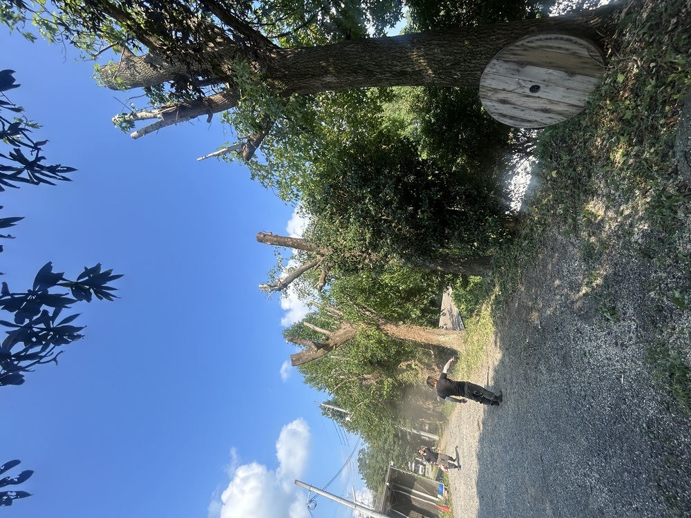 この前投稿した記事のメインディッシュだった楠。 メインディッシュは僕がいただきました。 重機や機械が使えない環境だったので全て手作業。 建物との距離も近かったので、登って一本一本慎重に切って降ろしました。 全て切って降りた時には腕や指が攣ってしまって、やはりこの暑さの中での樹上作業は気をつけないと、熱中症でゲームオーバーですね。 もうすぐ夏も終わりと聞いているので、冬場はガンガン木登りしたいと思います。 この暑さでも薪に晴れ舞台を!