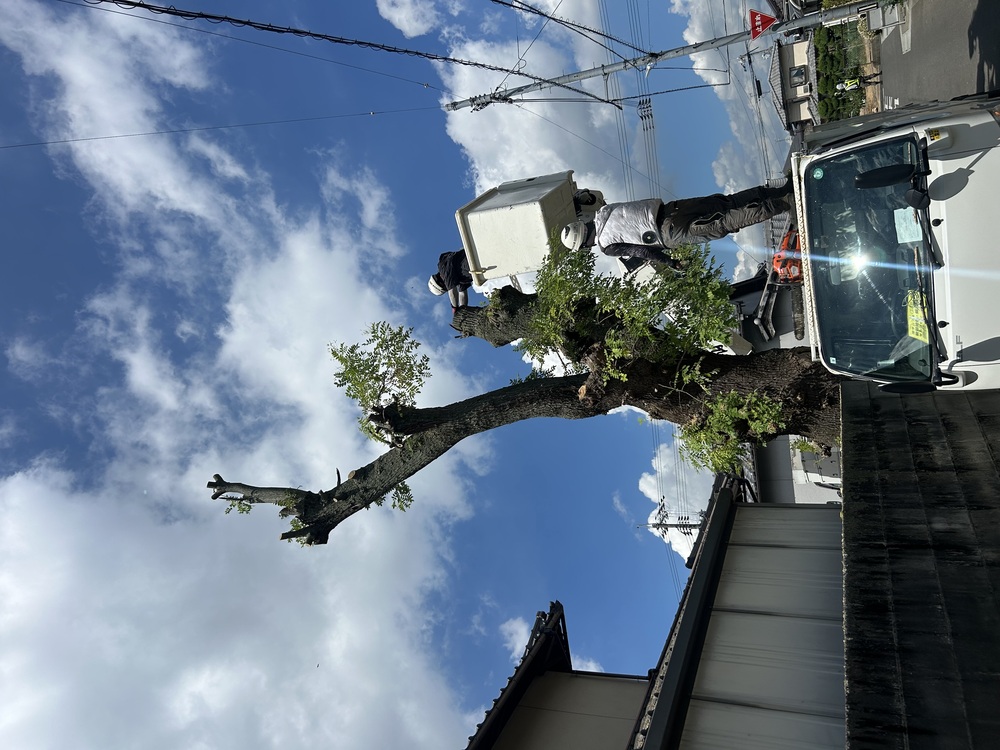 今日は団地のど真ん中での伐採です。 ブロック塀を突き抜けて大きく成長した木を伐ったのですが、普段聞き慣れない音が聞こえて、近所の住民が何事か?と見学にいらっしゃいます。 皆さん口々に、伐採される木の思いを教えて下さいました。 いつも変わらずそこにあるものがなくなると、どこか寂しいような、そんな感情を感じる一言を多く聞きました。 なぜなら、僕はガードマンをしていたからです! 民家の庭木が大きくなりすぎて、落ち葉とか、枯れてしまって倒木などのデメリットやリスクがあるので、伐採という選択肢は必要だと思います。 たくさん思い出のある木でも、管理出来なくなるとリスクばかり大きくなってしまいます。 木に対しての考え方は十人十色なので、正解はないかもしれませんが、お施主様の理想に近づける提案を心掛けたいと思っています。 そんな事を思いながらも薪に晴れ舞台を!