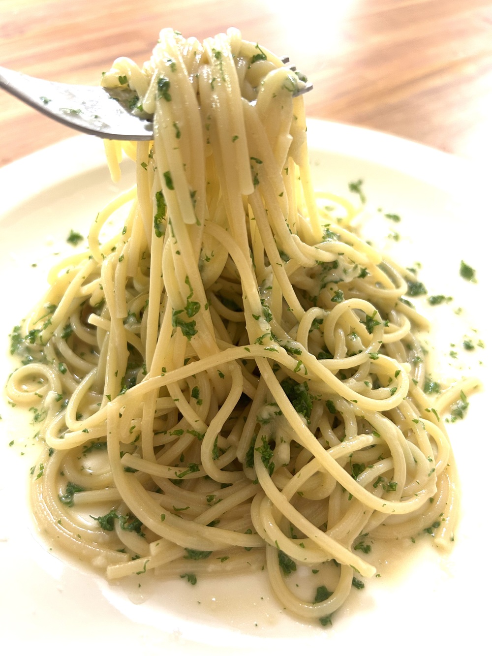 パセリ にんにく パルミジャーノ ブラックペッパー オリーブオイル シンプルなパスタ 乳化が大事 僕はコロナで今週ずっと家にいました。 家と職場の往復しかしていないのになぜか感染していました。 元気になったので、めしあがれ
